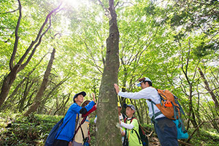 This hands-on nature program, geared to elementary school students from grades 3 through 6 and their parents or guardians, is held in the home regions of Suntory Tennensui (Mineral Water). Participants experience for themselves the importance of water and of the forests that produce it amid the great outdoors at Hakushu (Yamanashi prefecture), Kita Alps (Nagano prefecture), Okudaisen (Tottori prefecture), and Aso (Kumamoto prefecture). The Outdoor School of Forest and Water staff conduct the program together with expert instructors who play active roles locally in environmental education.