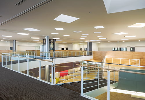 Intellectual exchange is reflected in the workplace, with all areas of the center utilizing an open-desk, open-lab system. We hope freely choosing worksites and sharing workplaces will lead to interaction among various people and improve individual creativity.