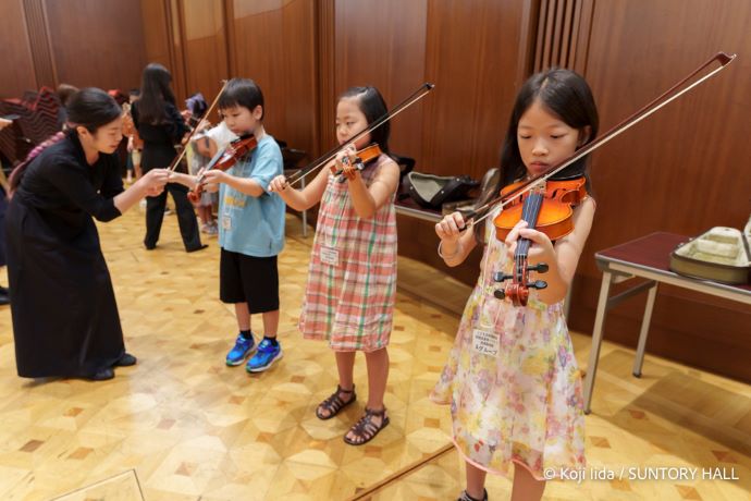 Members of the Tokyo Symphony Orchestra led a hands-on string instrument experience for children. (September 7 2025) -
