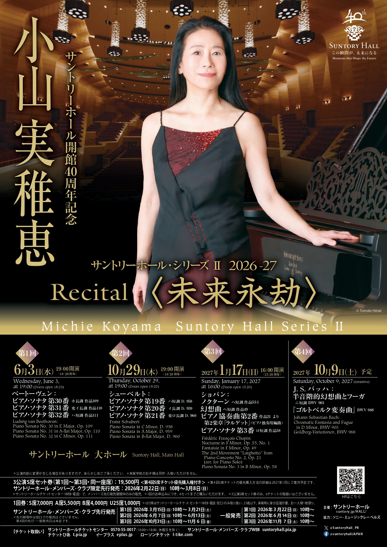 * Multiple Discount Ticket (Michie Koyama Suntory Hall Series Ⅱ - 3 Concerts) S set ¥19,500