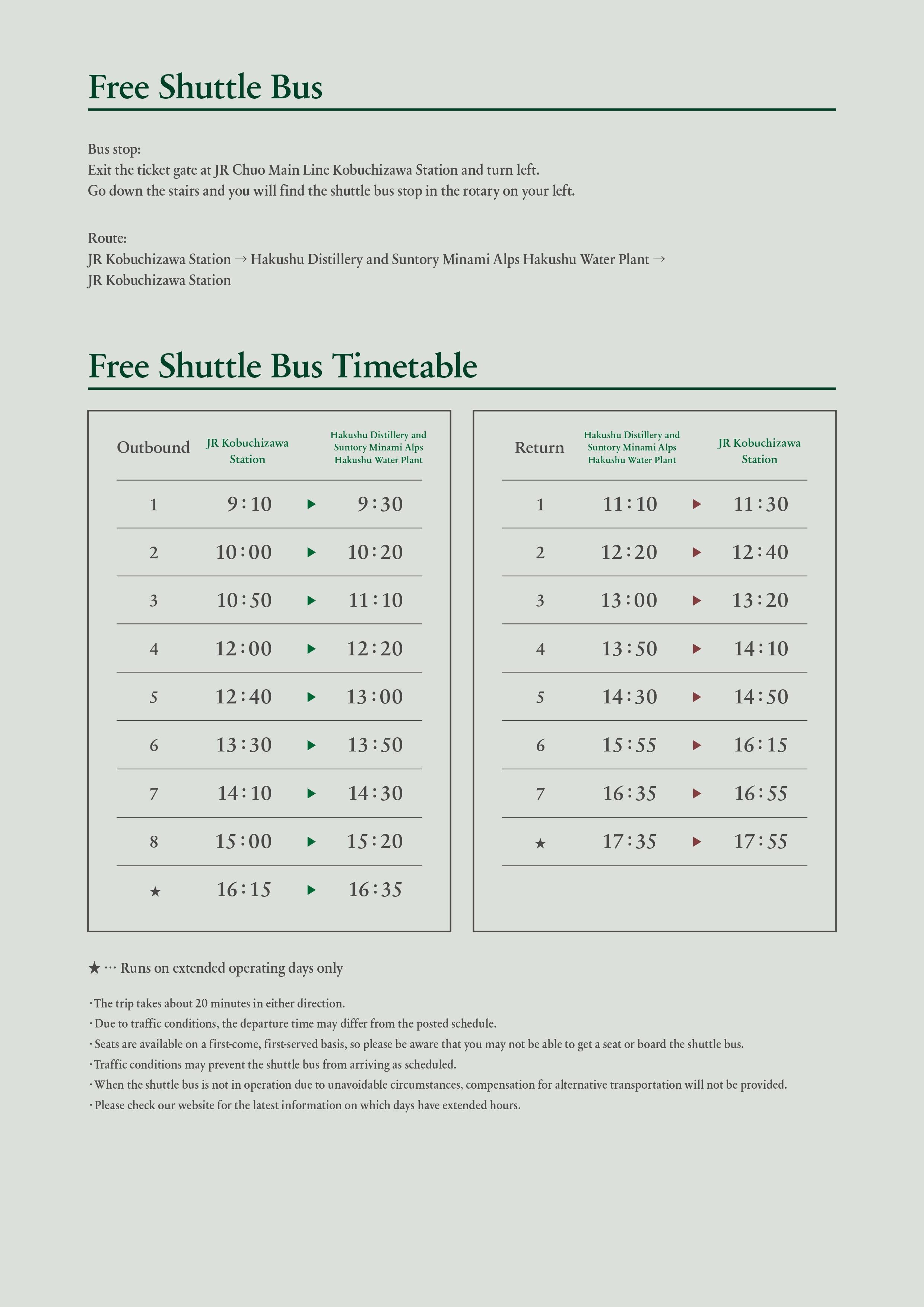 When using the shuttle bus service, please check the timetable in advance and allow ample time for boarding.