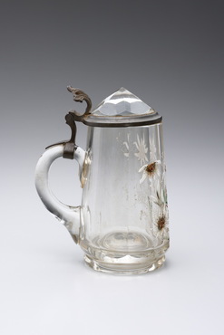 Covered mug with edelweiss design, enameled