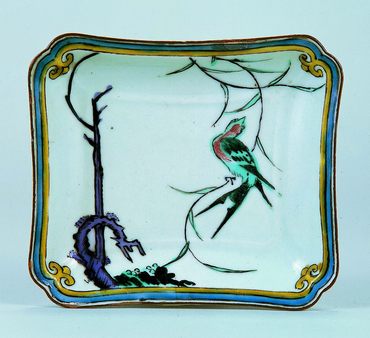 Large dish with magnolia design in overglaze enamels, Kutani style
