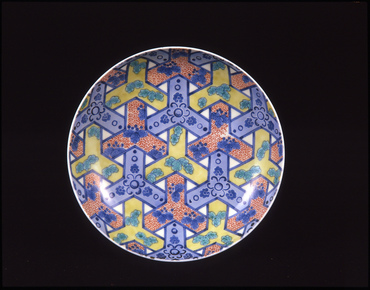 Dish with Bishamon Grid Design in Overglaze Enamels