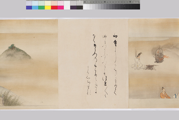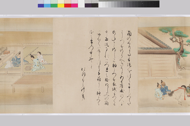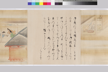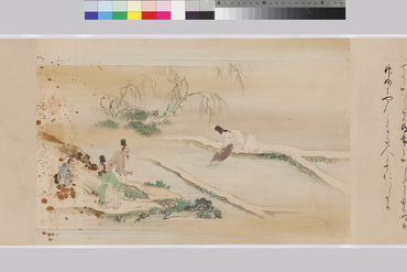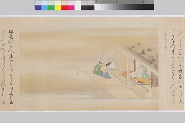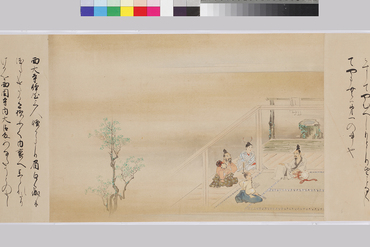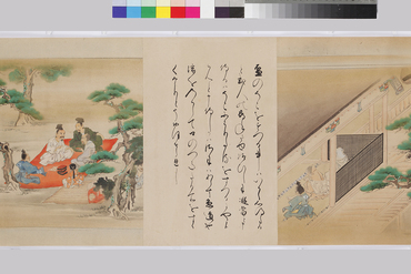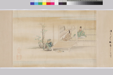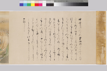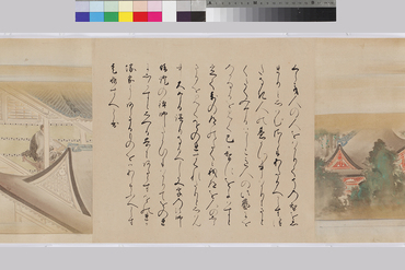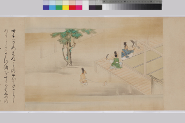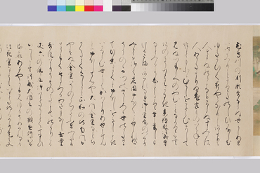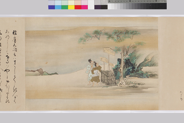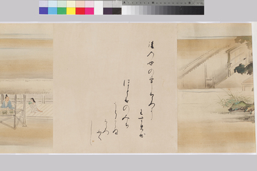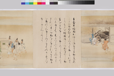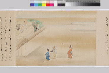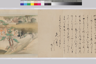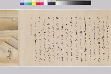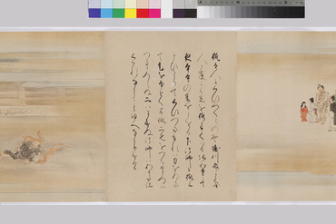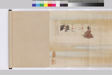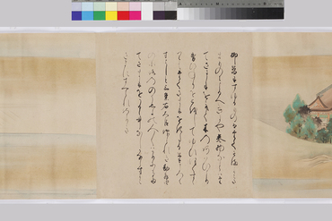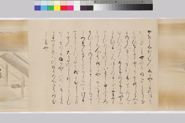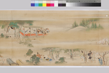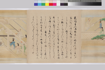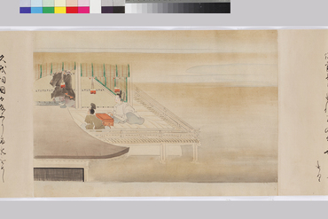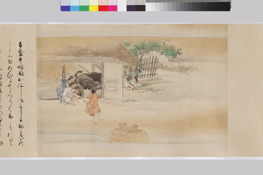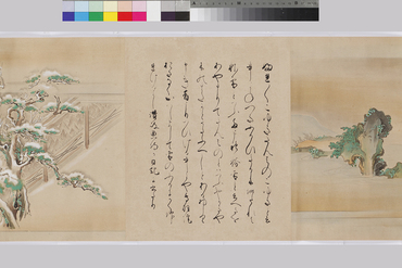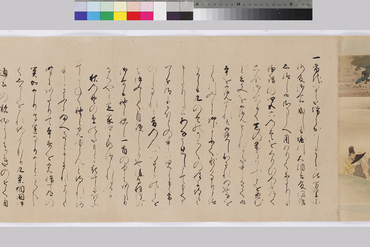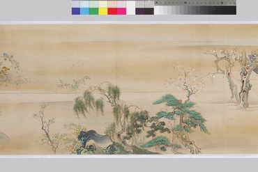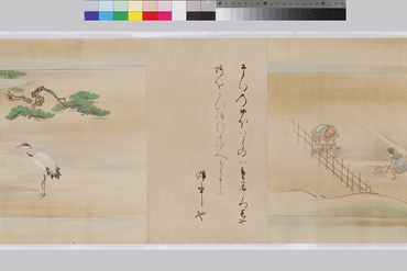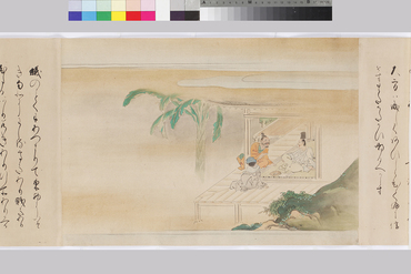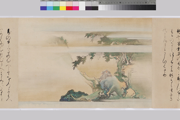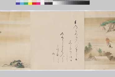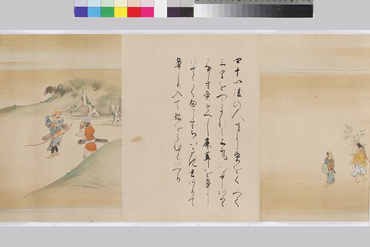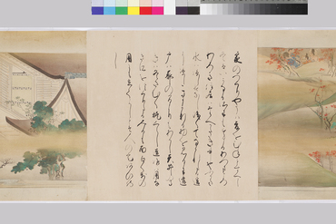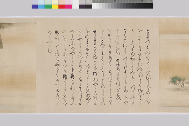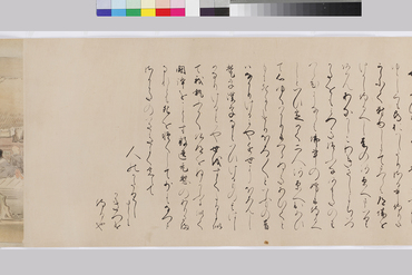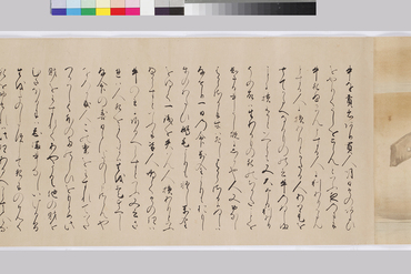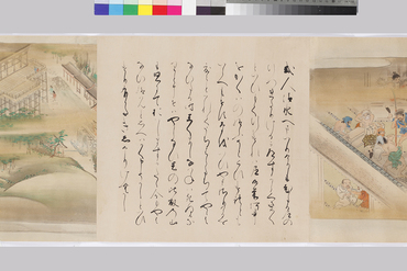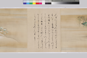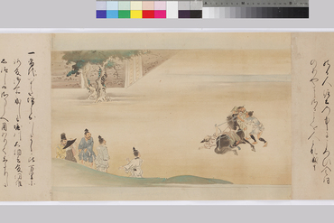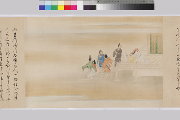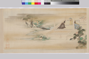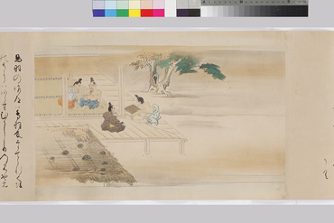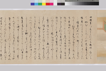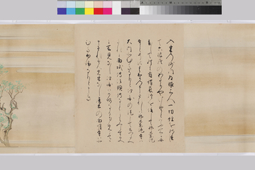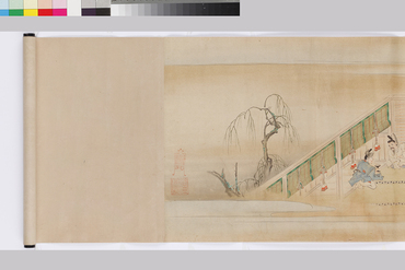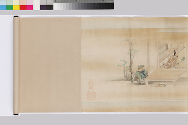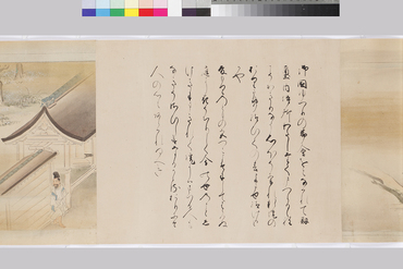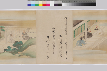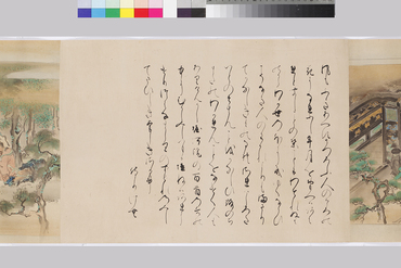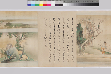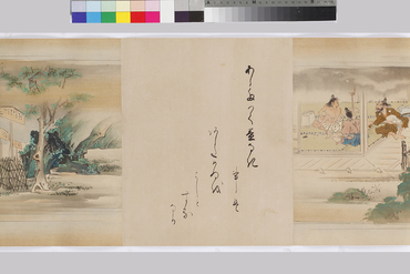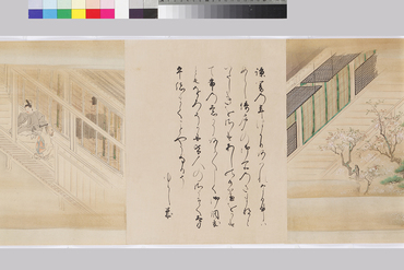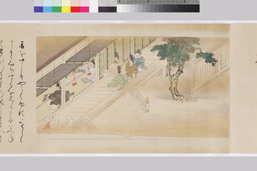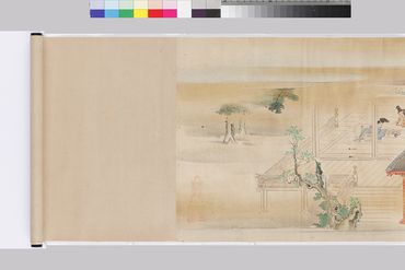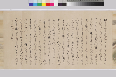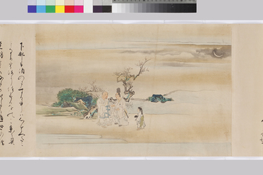 This is the only existing major picture scroll with explanatory notes for the whole text and illustrations for all chapters of the Tsurezuregusa (Essays in Idleness) written by the monk Kenkō. The esthetics of Kenkō are symbolically expressed in soft hues by Yūsetsu, the son of Kaihō Yūshō. Illustrations of the Tsurezuregusa, which was written in the Kamakura period, began to appear in the Edo period. The annotated and illustrated edition of the Nagusamigusa published around 1652 (Keian 5) is traditionally regarded as the first Tsurezure-e (Essays in Idleness painting). However, the chapter divisions in this picture scroll are consistent with an earlier printed book making it a valuable scroll that predates the publication of the Nagusamigusa.