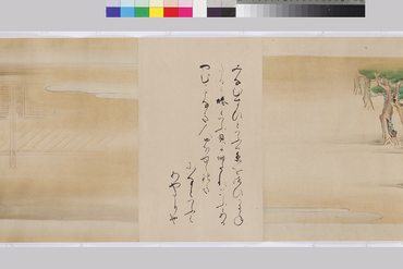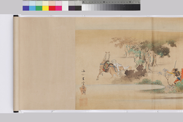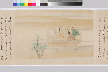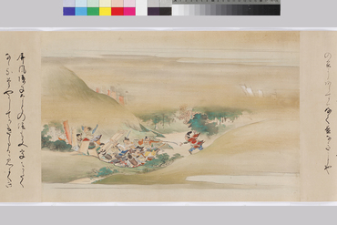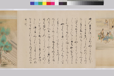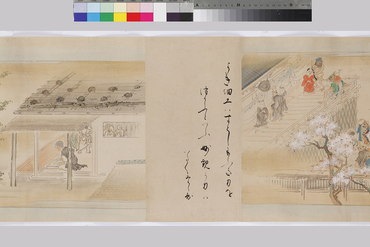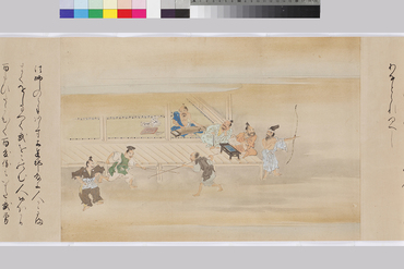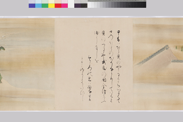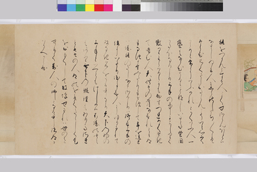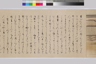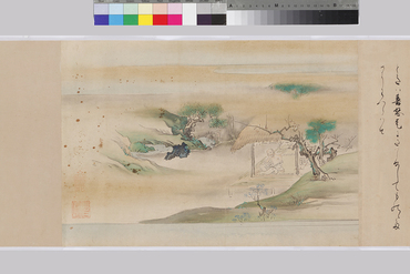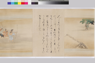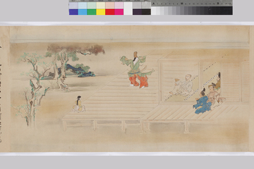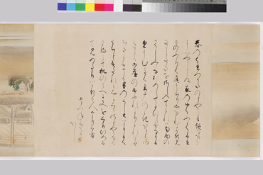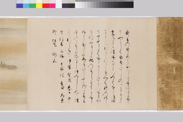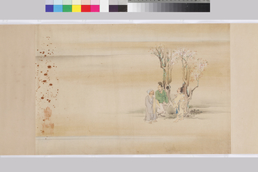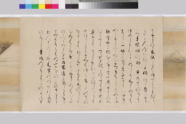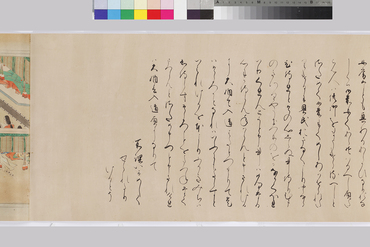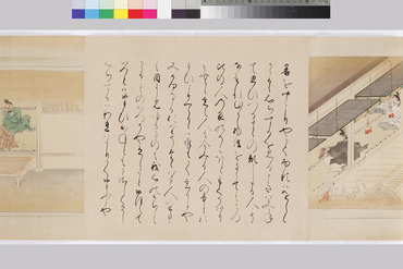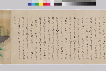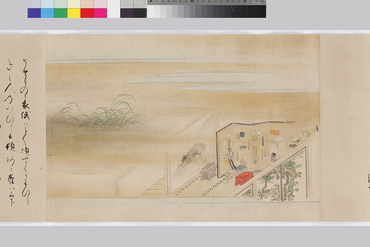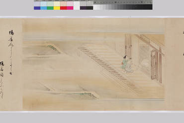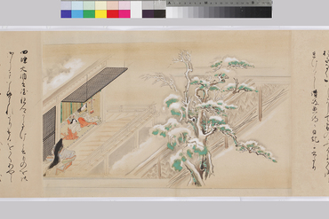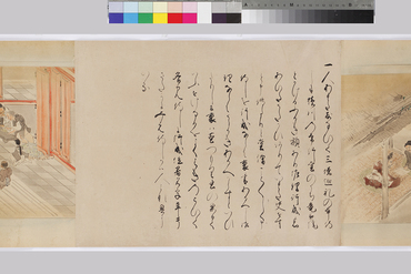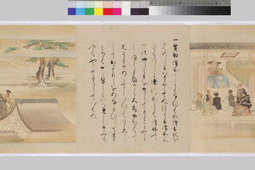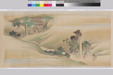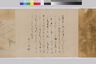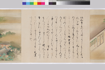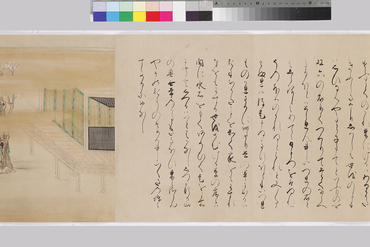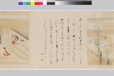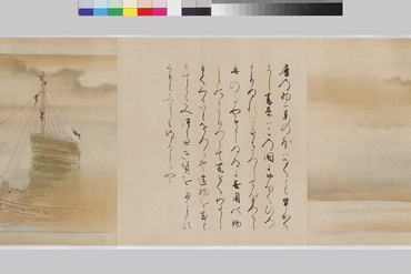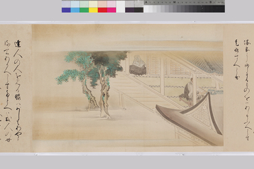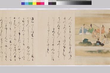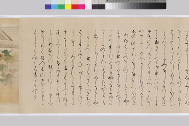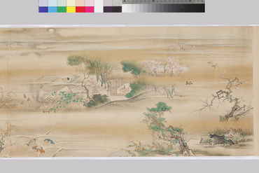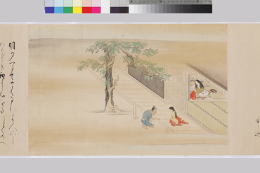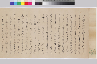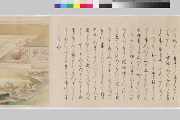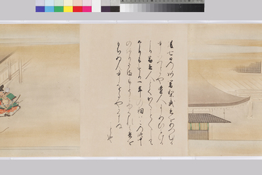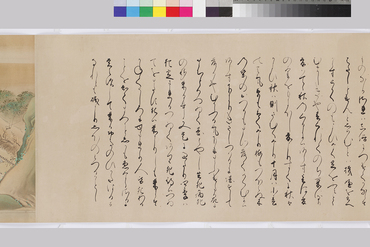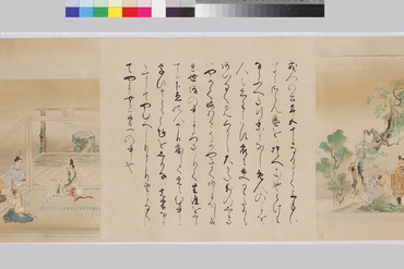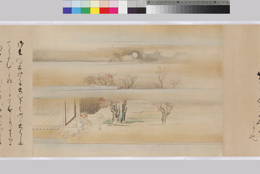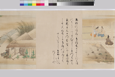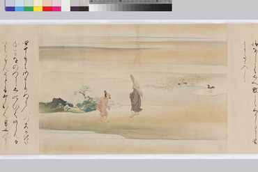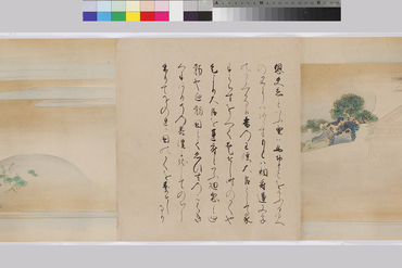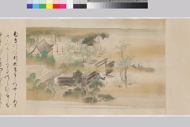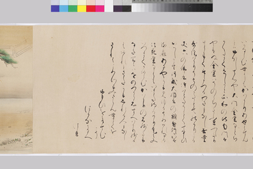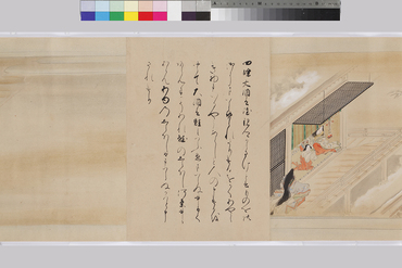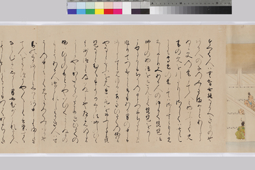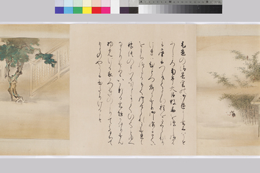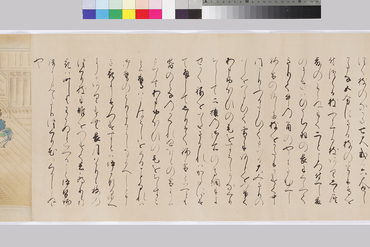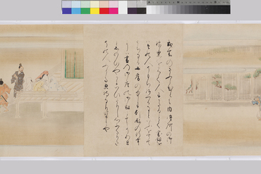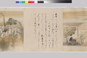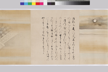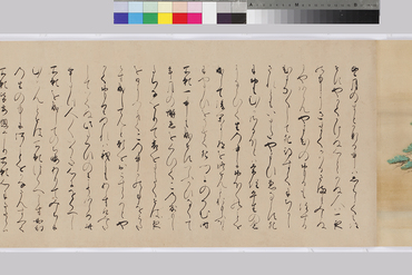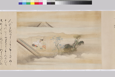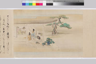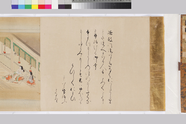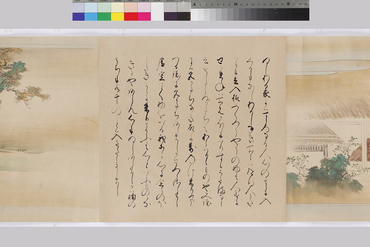 This is the only existing major picture scroll with explanatory notes for the whole text and illustrations for all chapters of the Tsurezuregusa (Essays in Idleness) written by the monk Kenkō. The esthetics of Kenkō are symbolically expressed in soft hues by Yūsetsu, the son of Kaihō Yūshō. Illustrations of the Tsurezuregusa, which was written in the Kamakura period, began to appear in the Edo period. The annotated and illustrated edition of the Nagusamigusa published around 1652 (Keian 5) is traditionally regarded as the first Tsurezure-e (Essays in Idleness painting). However, the chapter divisions in this picture scroll are consistent with an earlier printed book making it a valuable scroll that predates the publication of the Nagusamigusa.