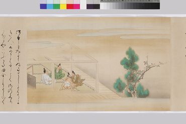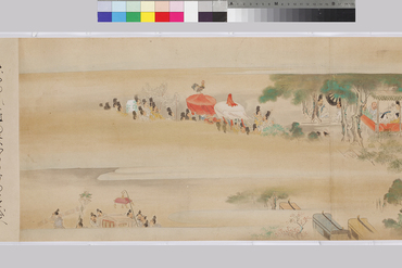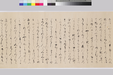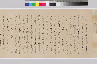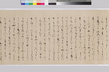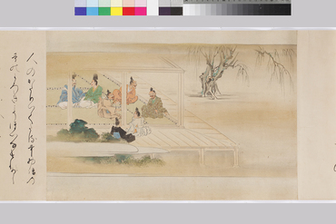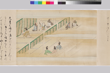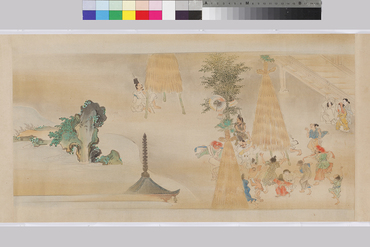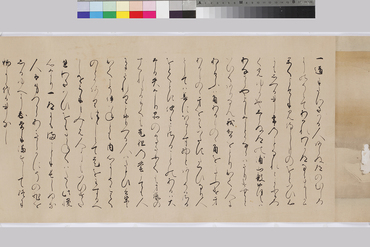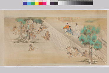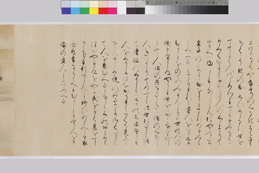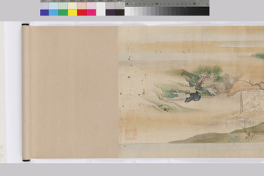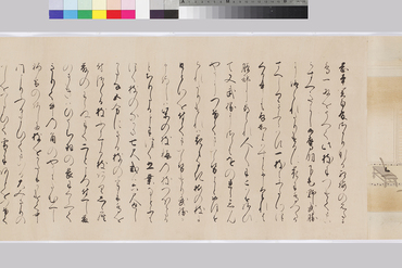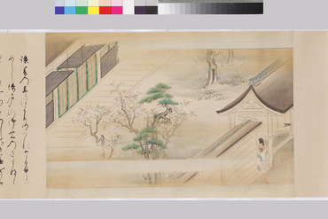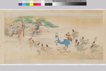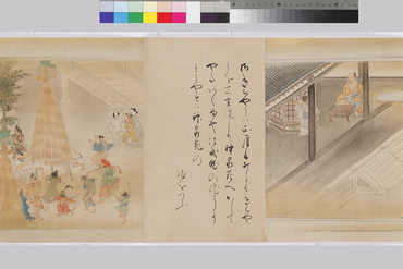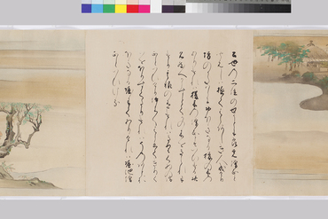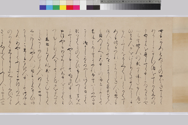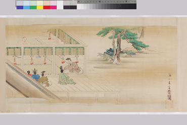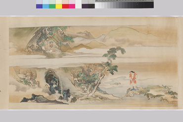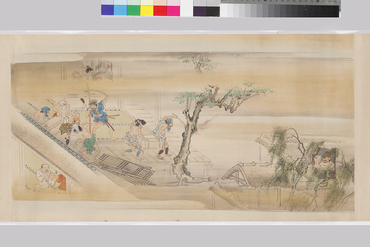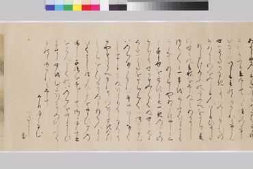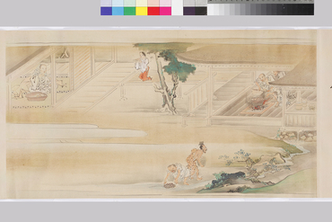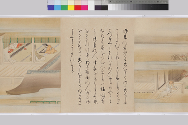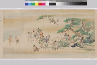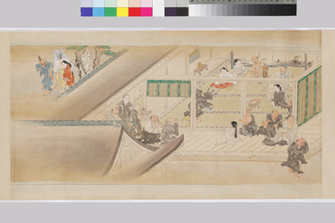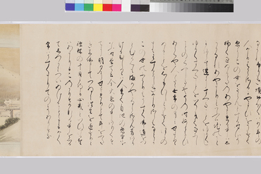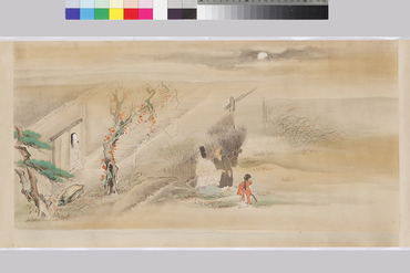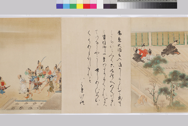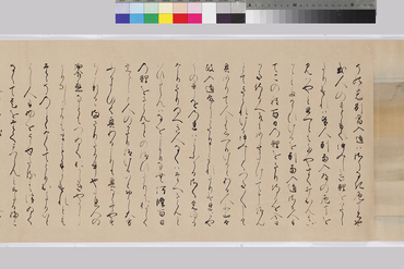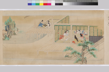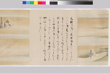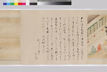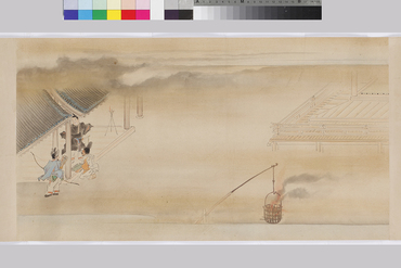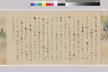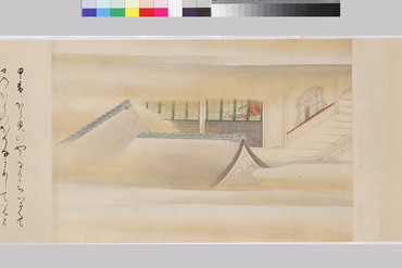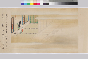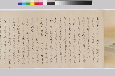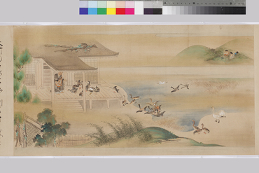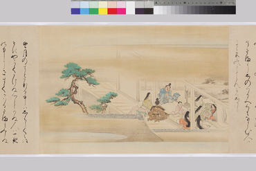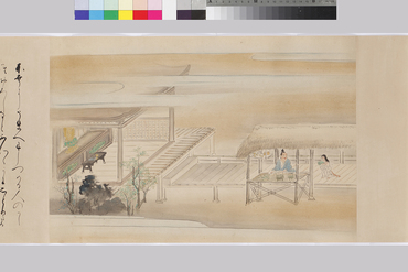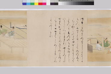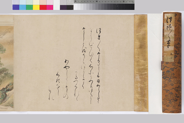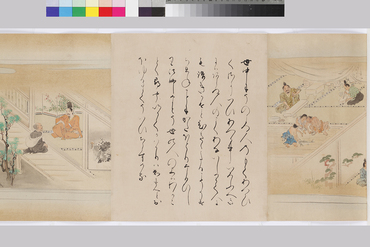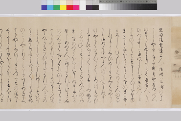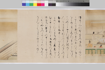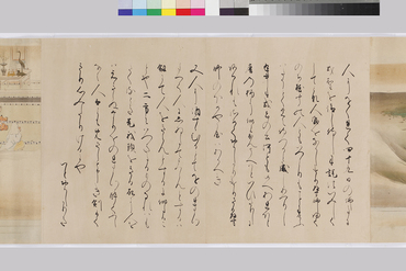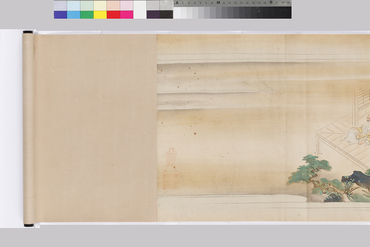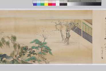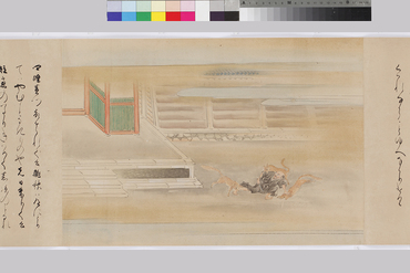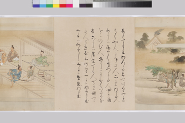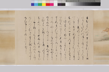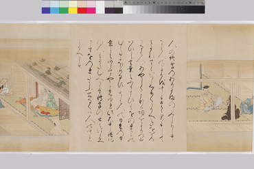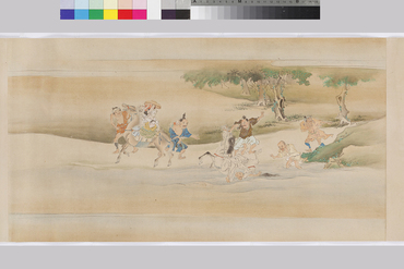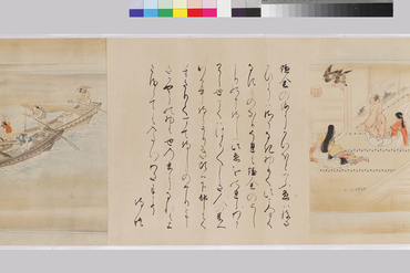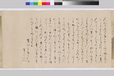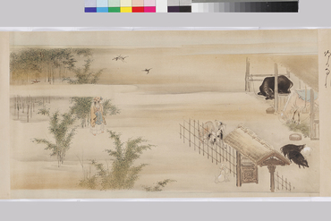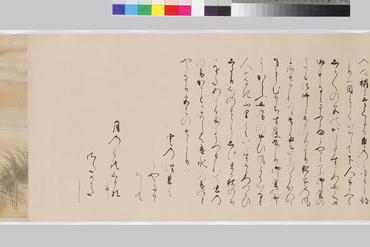 This is the only existing major picture scroll with explanatory notes for the whole text and illustrations for all chapters of the Tsurezuregusa (Essays in Idleness) written by the monk Kenkō. The esthetics of Kenkō are symbolically expressed in soft hues by Yūsetsu, the son of Kaihō Yūshō. Illustrations of the Tsurezuregusa, which was written in the Kamakura period, began to appear in the Edo period. The annotated and illustrated edition of the Nagusamigusa published around 1652 (Keian 5) is traditionally regarded as the first Tsurezure-e (Essays in Idleness painting). However, the chapter divisions in this picture scroll are consistent with an earlier printed book making it a valuable scroll that predates the publication of the Nagusamigusa.
