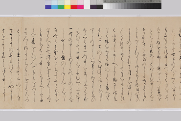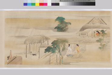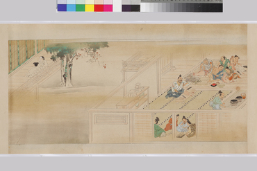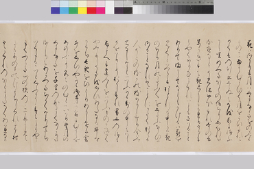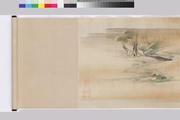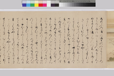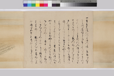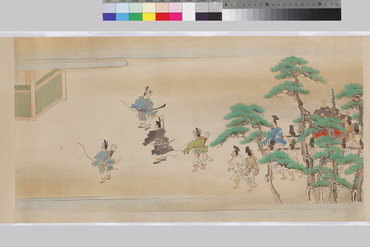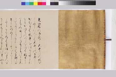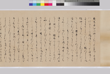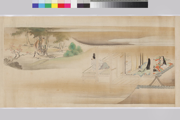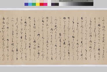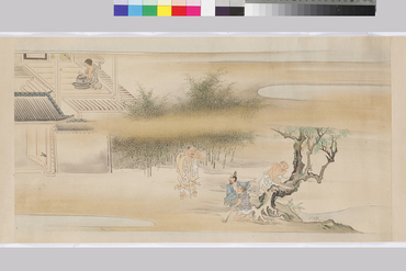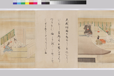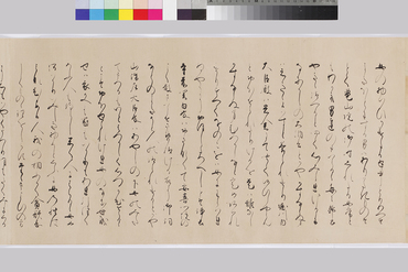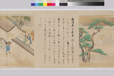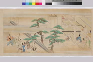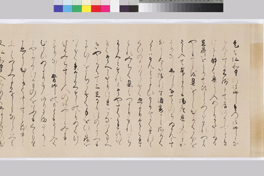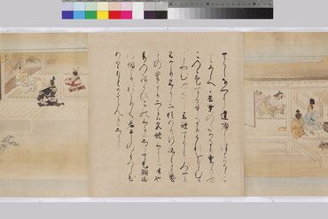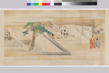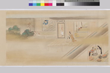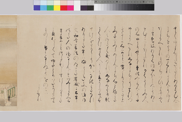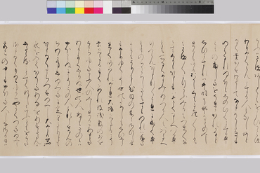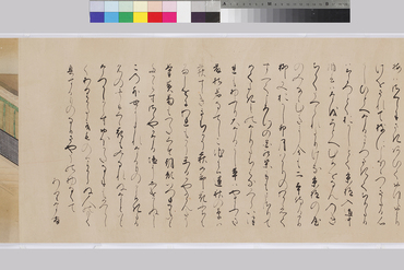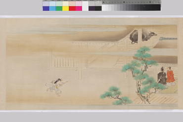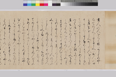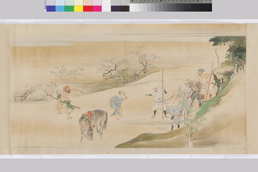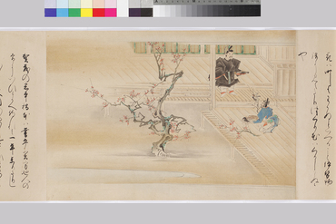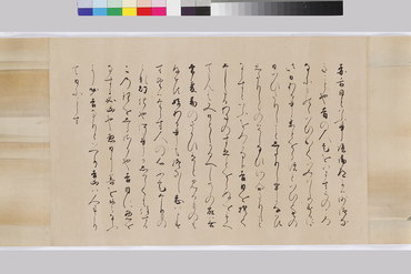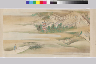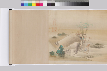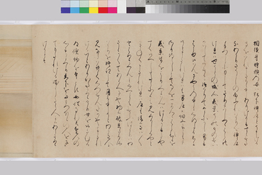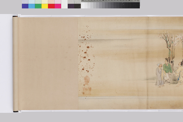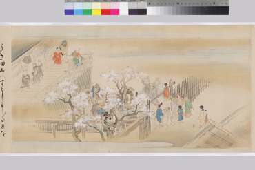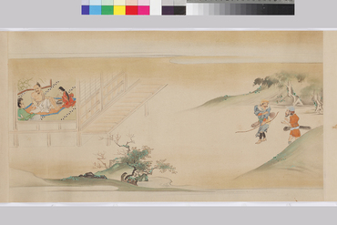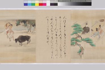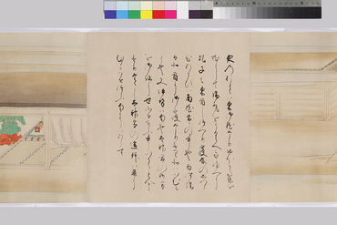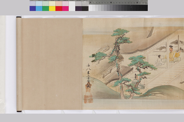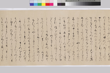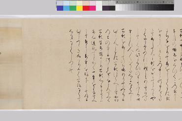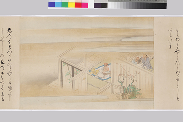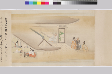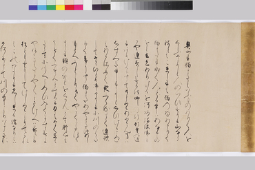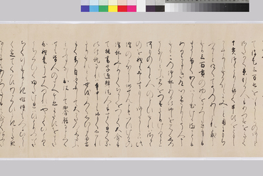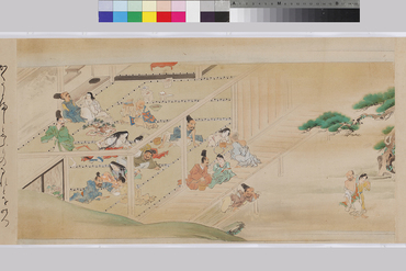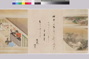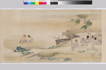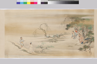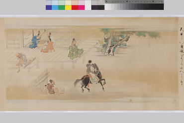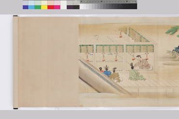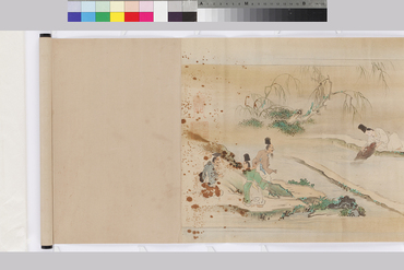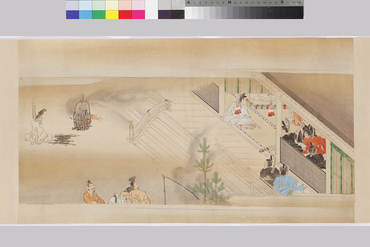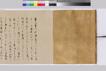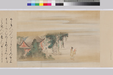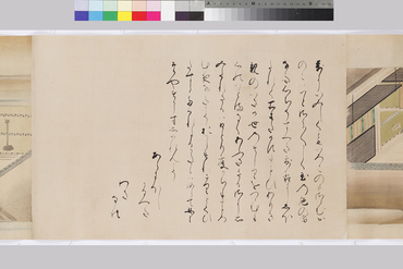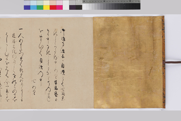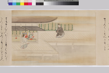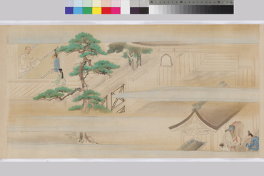 This is the only existing major picture scroll with explanatory notes for the whole text and illustrations for all chapters of the Tsurezuregusa (Essays in Idleness) written by the monk Kenkō. The esthetics of Kenkō are symbolically expressed in soft hues by Yūsetsu, the son of Kaihō Yūshō. Illustrations of the Tsurezuregusa, which was written in the Kamakura period, began to appear in the Edo period. The annotated and illustrated edition of the Nagusamigusa published around 1652 (Keian 5) is traditionally regarded as the first Tsurezure-e (Essays in Idleness painting). However, the chapter divisions in this picture scroll are consistent with an earlier printed book making it a valuable scroll that predates the publication of the Nagusamigusa.