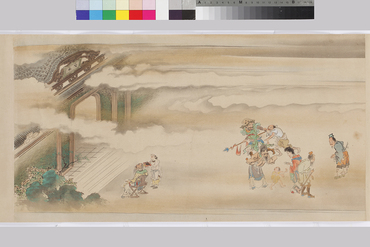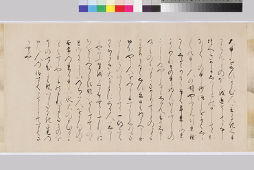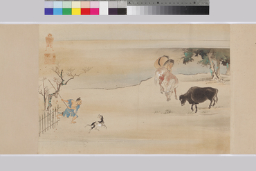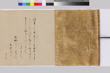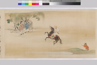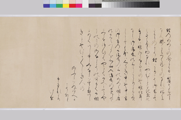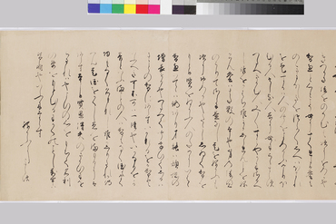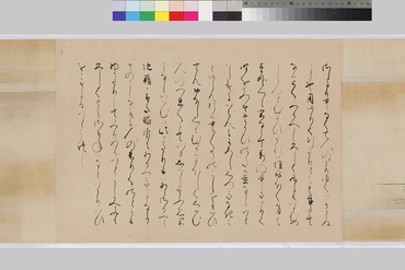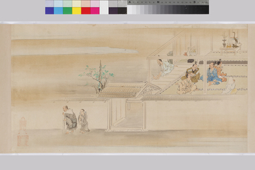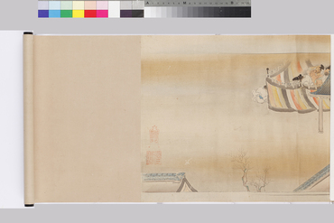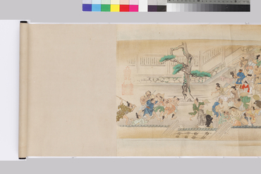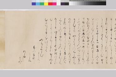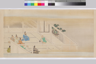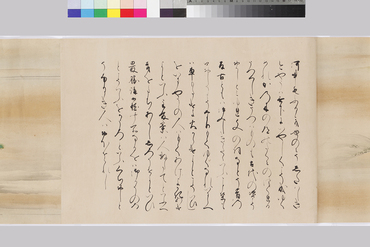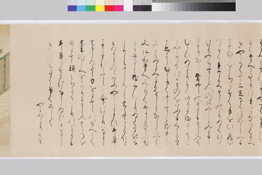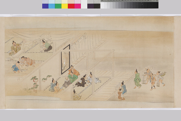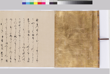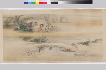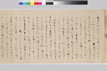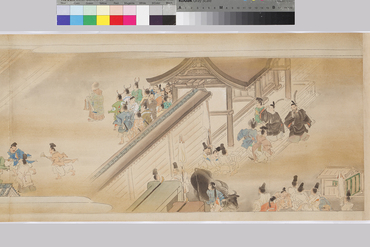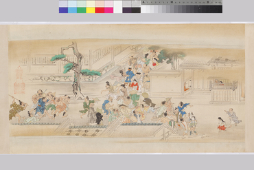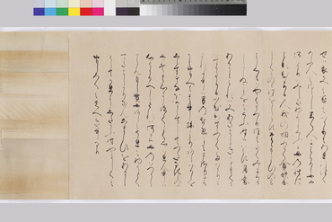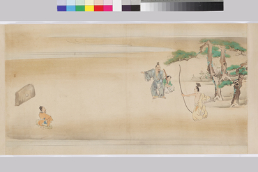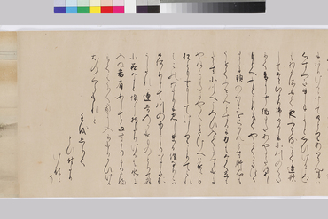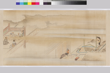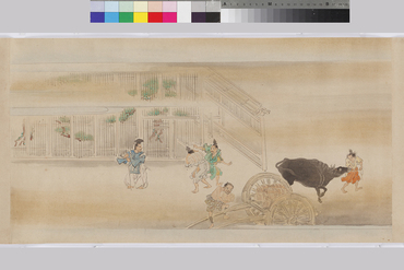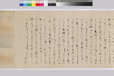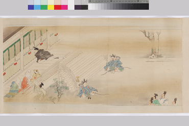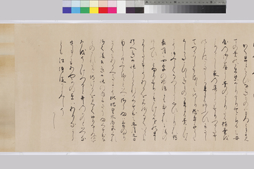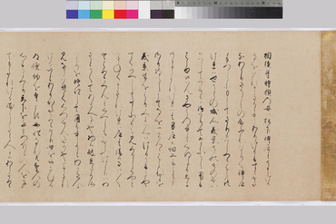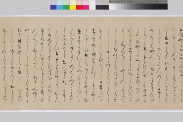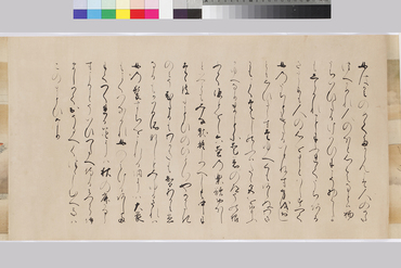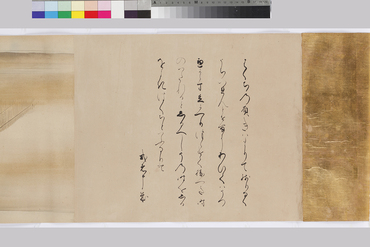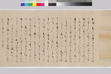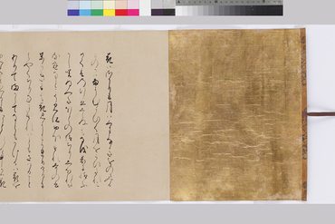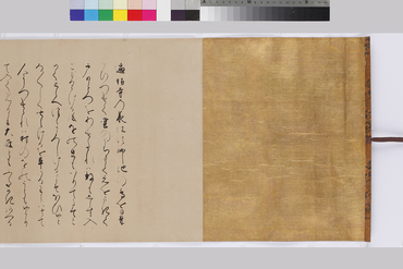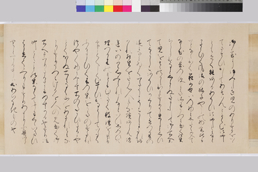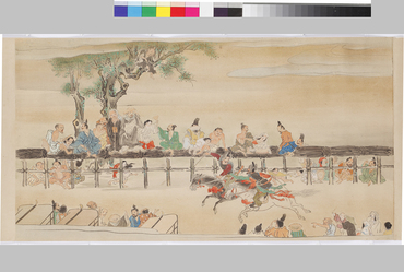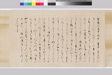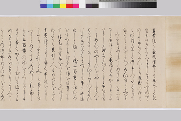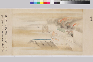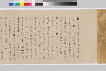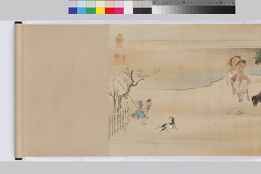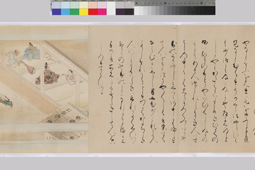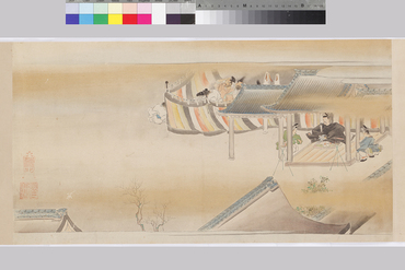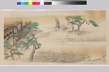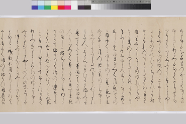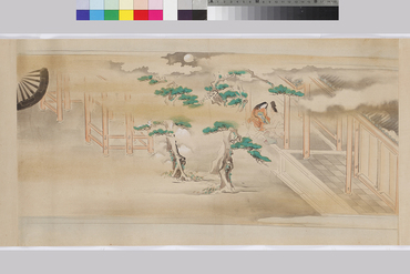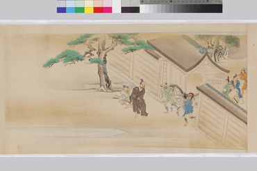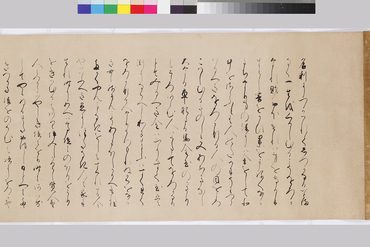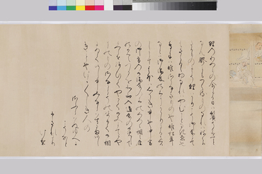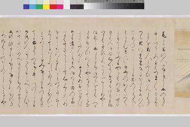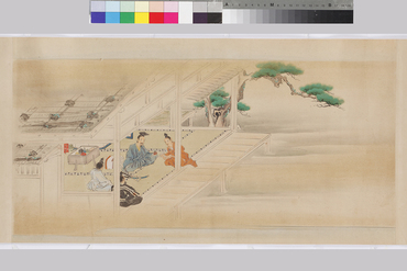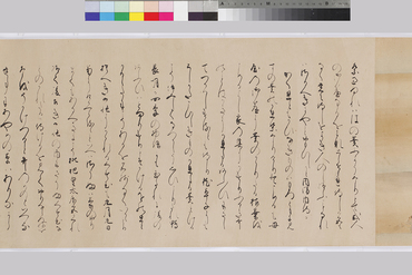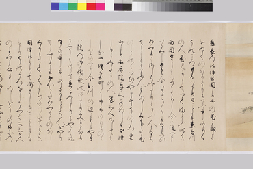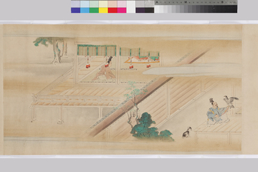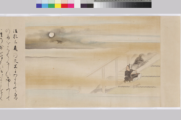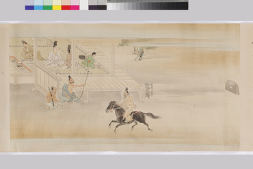 This is the only existing major picture scroll with explanatory notes for the whole text and illustrations for all chapters of the Tsurezuregusa (Essays in Idleness) written by the monk Kenkō. The esthetics of Kenkō are symbolically expressed in soft hues by Yūsetsu, the son of Kaihō Yūshō. Illustrations of the Tsurezuregusa, which was written in the Kamakura period, began to appear in the Edo period. The annotated and illustrated edition of the Nagusamigusa published around 1652 (Keian 5) is traditionally regarded as the first Tsurezure-e (Essays in Idleness painting). However, the chapter divisions in this picture scroll are consistent with an earlier printed book making it a valuable scroll that predates the publication of the Nagusamigusa.