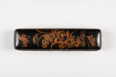 Long letter box bearing the design of autumn plants, crane and tortoise in maki-e
