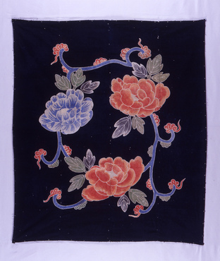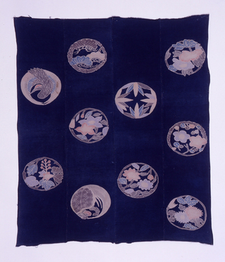 Tsutsugaki bedding with tiger and bamboos, and zingiber mioga crest design