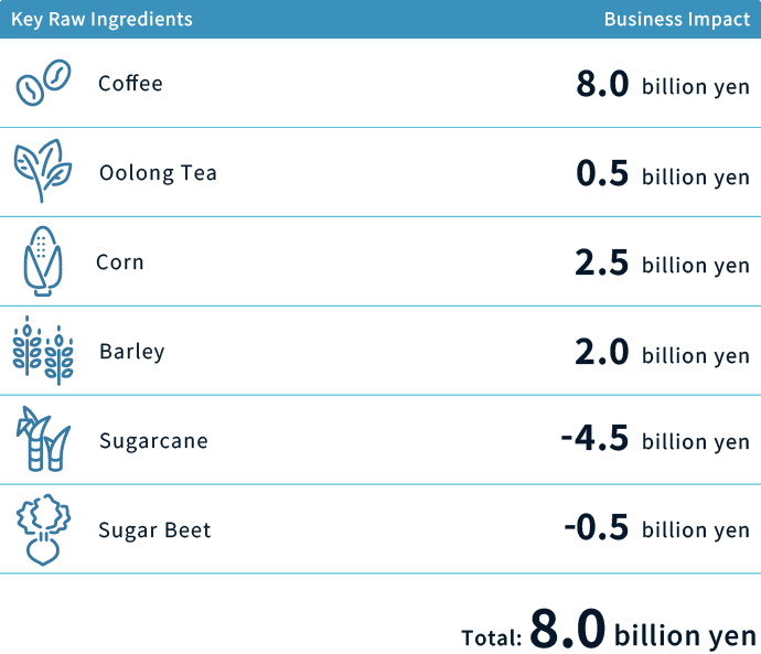 At Suntory Group, the Global Sustainability Committee identifies, assesses, and manages risks and opportunities related to sustainability. The Global Risk Management Committee regularly identifies and assesses risks within Suntory Group, identifies risks that should be addressed as a priority for Suntory Group, and promotes risk mitigation activities Group-wide. Sustainability-related risks are also included in the scope of the Committee’s activities. The results of these activities are reported to the Board of Directors on regular basis. Nature capital-related risks and climate change-related risks are considered to be among the most important risks and the status of responses are monitored within this process.