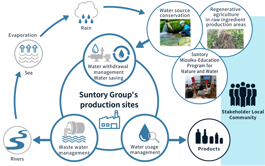 Suntory Group endorsed the CEO Water Mandate global platform, which is a United Nations Global Compact initiative to support the prevalence, practice and informational disclosure of water sustainability at companies.
