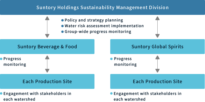 Based on Suntory Group Environmental Principles , we have established the Suntory Group Sustainable Water Philosophy to guide our efforts in addressing water challenges in various regions around the world. Based on this philosophy, we develop and promote initiatives that are tailored to the water resources conditions in each area where we do operate.