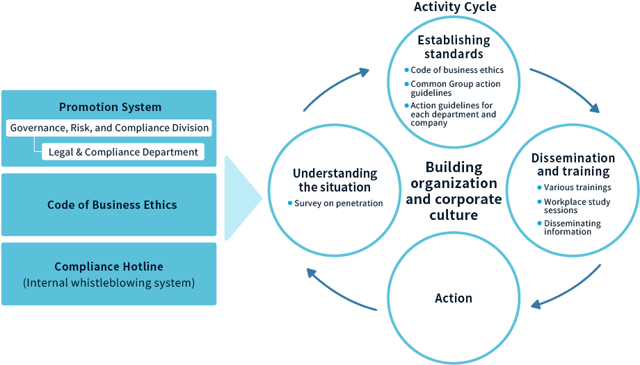Each Group company in Japan undertakes related activities in which the compliance promotion managers play a key role. In addition to supporting work by Group companies in Japan to promote compliance, our Legal & Compliance Department also provides training for newly appointed directors and managers at these companies, to help them develop a more in-depth understanding of the leading role that they need to play in compliance management.