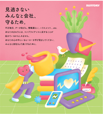 Suntory Group strives to create an organization and corporate culture that place the highest priority on compliance to fulfill our responsibilities and meet the expectations of our customers and society.