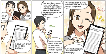 The Legal & Compliance Department has also produced short manga-style cartoons as an educational tool to strengthen awareness of the Code of Business Ethics in an easy-to-understand way, and these are being effectively utilized by individual overseas Group companies as teaching materials for employees who do not have access to the environment needed for e-learning.