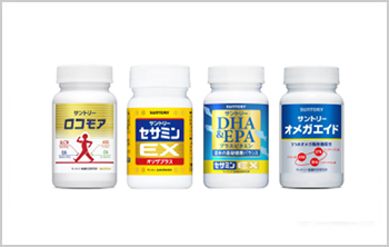 Suntory Wellness also sells a variety of other health food products such as "DHA & EPA + Sesamin EX," "Locomoa," and "Omega Aid."