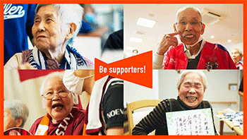 With this in mind, Suntory Wellness promotes the "Be supporters!" project which is built around the concept of "providing opportunities to shine for everyone who wants to be excited no matter how old they are." This project aims to make people who usually need support for daily lives such as elderly people living in nursing care facilities and people with dementia, become healthy both physically and mentally by encouraging them to become supporters of a local soccer club.