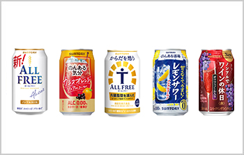 In addition to raising awareness regarding responsible drinking, Suntory Group strives to promote non-alcoholic drinks for a broad range of adult consumers of legal drinking age to enjoy without worrying about the effects of alcohol. In 2010, we launched "ALL-FREE and in 2011 "Non-aru-kibun", pioneering the creation of a market for non-alcoholic beverages with an alcohol content of 0.00%. In recent years, we have expanded our product lineup with the release of "All Free for Your Body," a food with functional claims that responds to growing health consciousness, "Non-aru-banshaku Lemon Sour Non-alcoholic," a lemon sour-flavored beverage, and "Non-alu-de-wine-no-kyujitsu," a new wine-flavored non-alcoholic beverage.