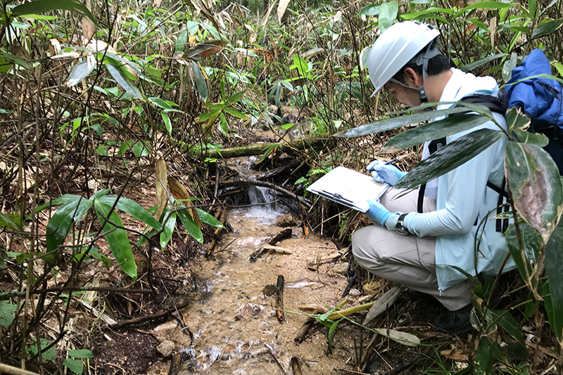 When investigating water sources, we put boots on the ground to observe the area and gather information, then organize and analyze the data using a computer. Furthermore, by conducting simulations that assume changes in precipitation due to climate change, it is possible to predict future changes in the water cycle.