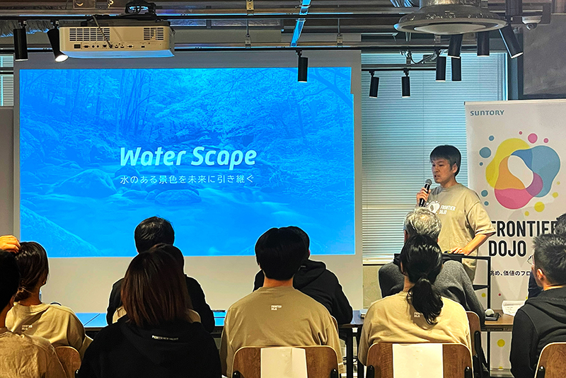 I thought that the knowledge and know-how that Suntory Group has amassed until now could be utilized to solve these water-related challenges. Therefore, through FRONTIER DOJO*, an internal venture program that supports employees in taking on the challenge of creating new businesses, I worked on commercializing a service related to water resources, based on the achievements I had accumulated over the past 20 years as a researcher at the Institute for Water Science.